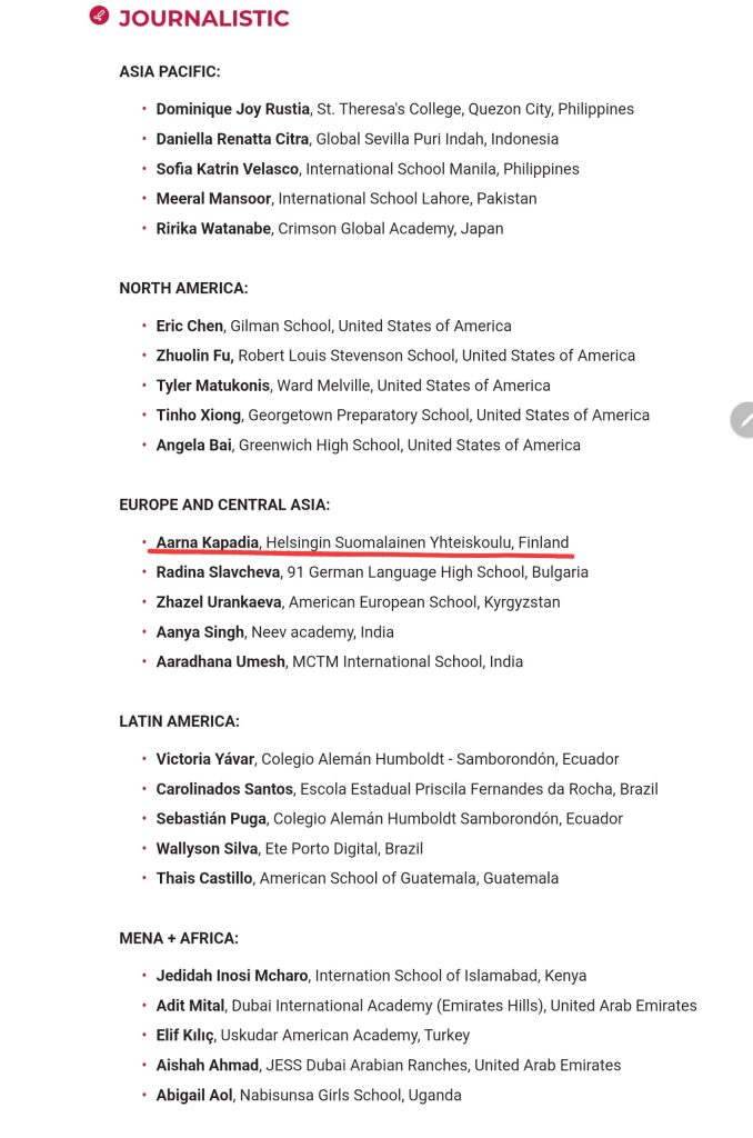 We are delighted to congratulate Aarna Kapadia on being awarded a Regional Winner (Eurasia; Journalistic category) in the Harvard Crimson Global Essay Competition 2024!