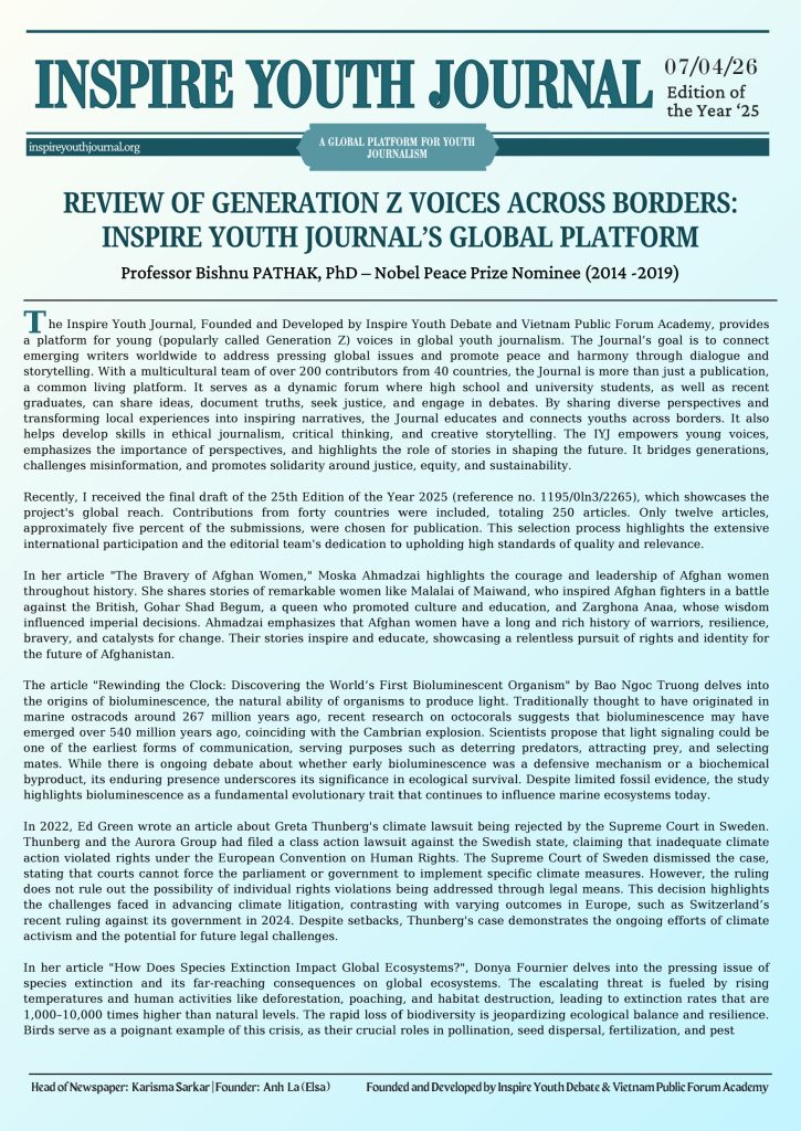 Inspire Youth Journal is a global platform for youth journalism, connecting young people worldwide who are passionate about current global issues and fostering peace....