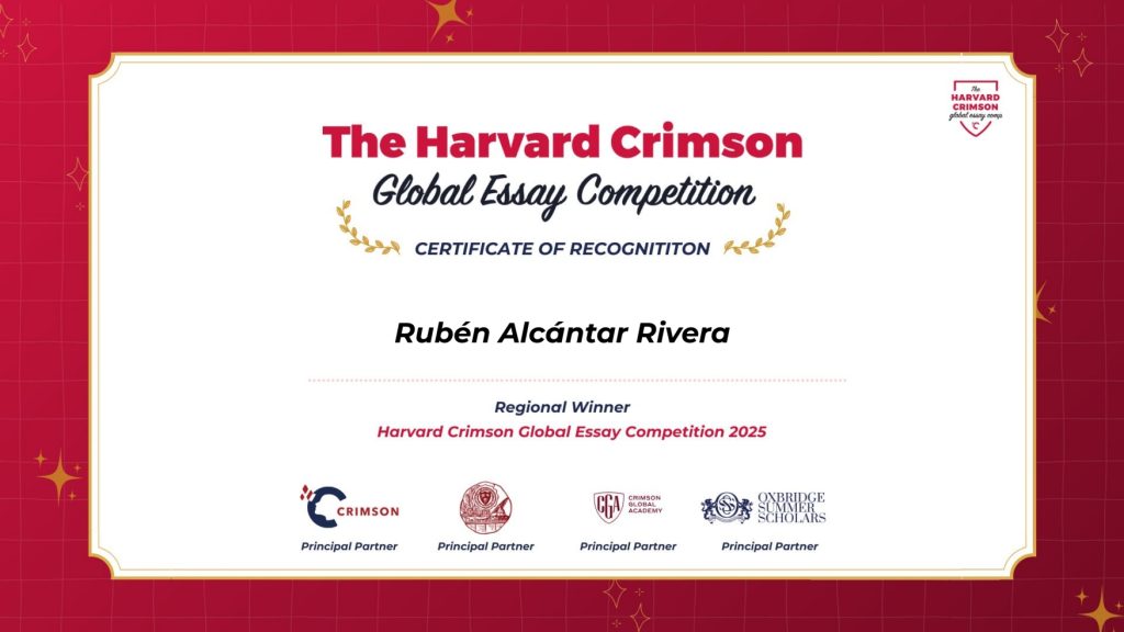 We are delighted to congratulate Rubén Alcántar Rivera on being awarded a Regional Winner (Latin America; Creative category) in the Harvard Crimson Global Essay Competition 2025!