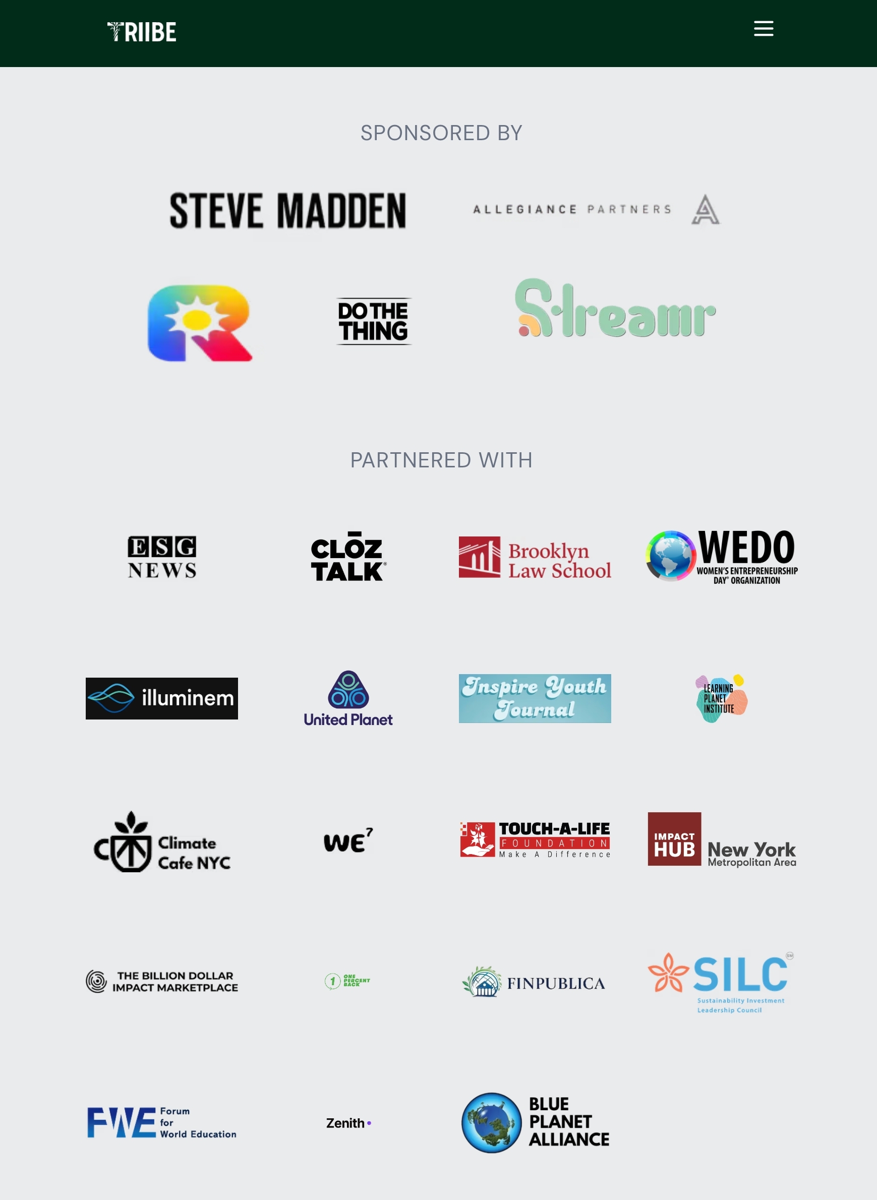 TRIIBE is sponsored by Steve Madden, Allegiance Partners, Rayze, and DO THE THING, and partners with ESG News, CLOZTALK, Brooklyn Law School, Women’s Entrepreneurship Day Organization (WEDO), illuminem, United Planet, INSPIRE YOUTH JOURNAL, Learning Plannet Institute, and other organizations.